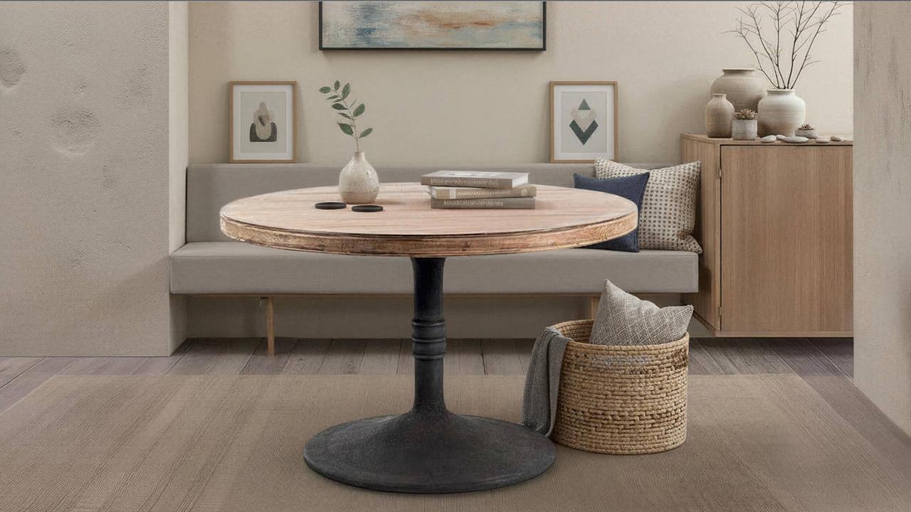 | Product Description | Sadie 48" Rd Dining Table Antique Natural / Iron |