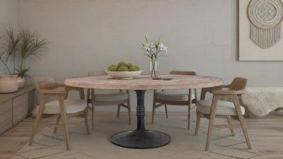 Ida 78" Oval Dining Table with Megan Base Iron / Antique Natural